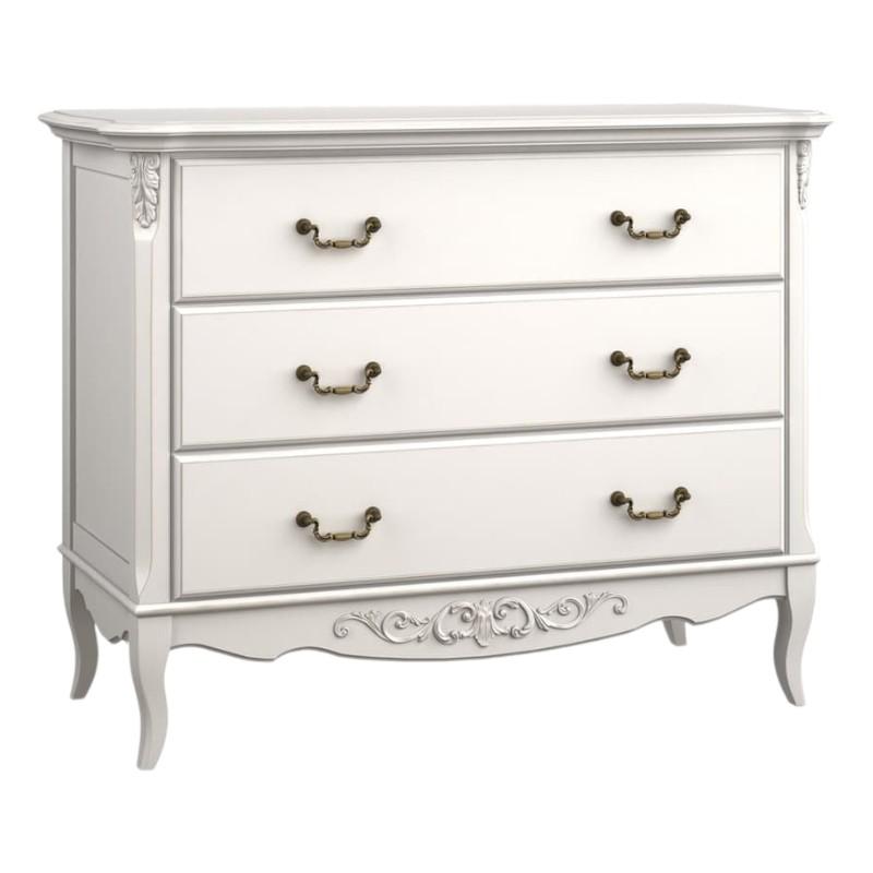 Представляем Вашему вниманию изысканный комод из коллекции Marlette, идеальное сочетание классического и провансальского стиля. Изготовлен из натурального дерева (бука), МДФ и березовой фанеры, обладает прочной конструкцией и изысканным внешним видом. Цвет комода - слоновая кость, что создает элегантное и изысканное ощущение. Размер,см — 119x52x95