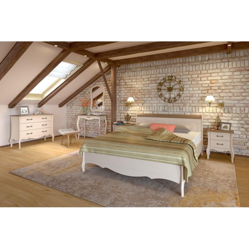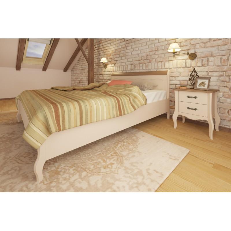 Спальное место 160х200 (180х200), высота царги 39 см, высота матраса (20 см) уложенного на решетку будет составлять 51 см от пола. Покрытие - укрывистый бежевый воск, структура древесины почти не просматривается. Поручень окрашен в цвет антик. Решетка из ламелей в комплект не входит. При необходимости можно уложить ортопедическое основание (приобретается отдельно).