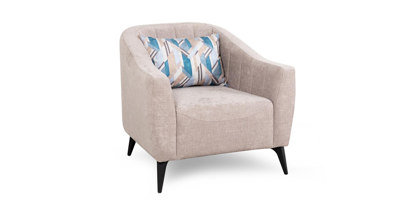 Компактное и удобное кресло на высоких металлических опорах – ваш яркий акцент в интерьере – или дополнение к дивану-книжке Наоми. Широкие подлокотники и мягкая приспинная подушка позволяют с комфортом отдохнуть в кресле с чашечкой чая и книгой или отвлечься от забот за просмотром фильма. Д x Г х В, мм): 860 x 870 x 800 высота посадки (мм): 450 глубина сиденья (мм): 450 высота спинки (мм): 380