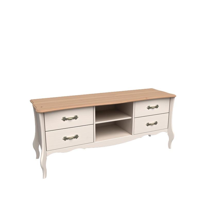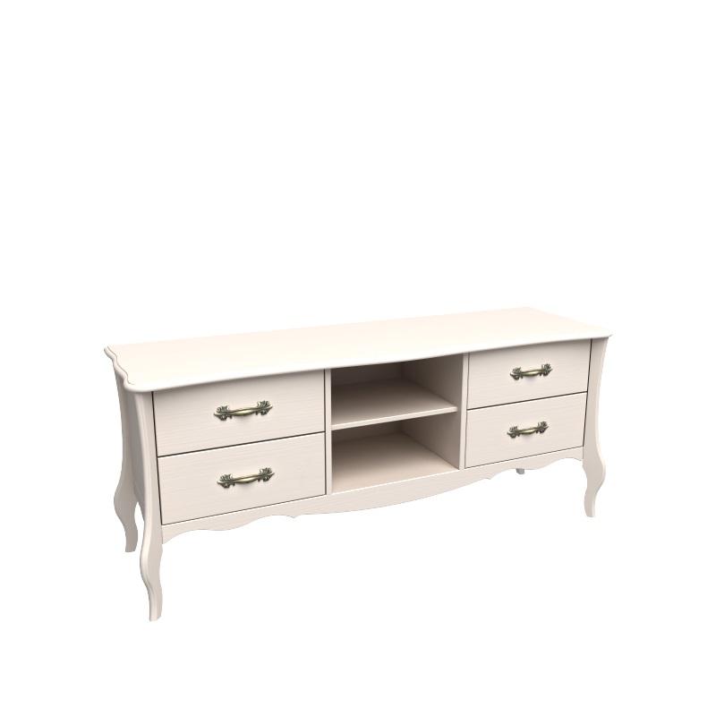 Тумба ТВ из массива сосны. Покрытие - укрывистый бежевый воск, структура древесины почти не просматривается. Выдвижные ящики на направляющих Blum с доводчиками. ШхВхГ 1550х662х470